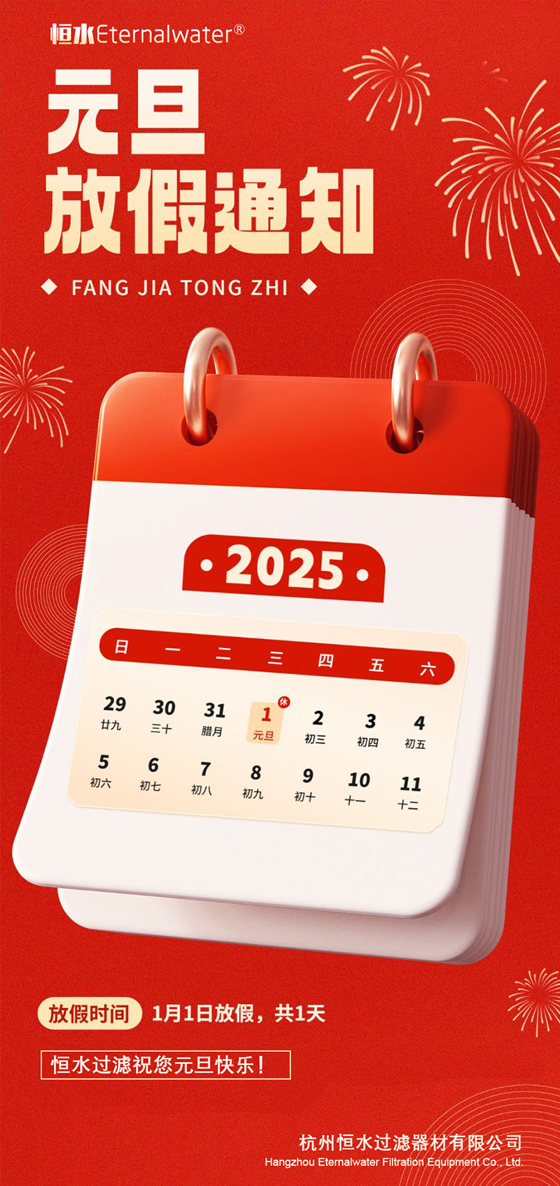 恒水過濾| 2025年元旦放假通知!